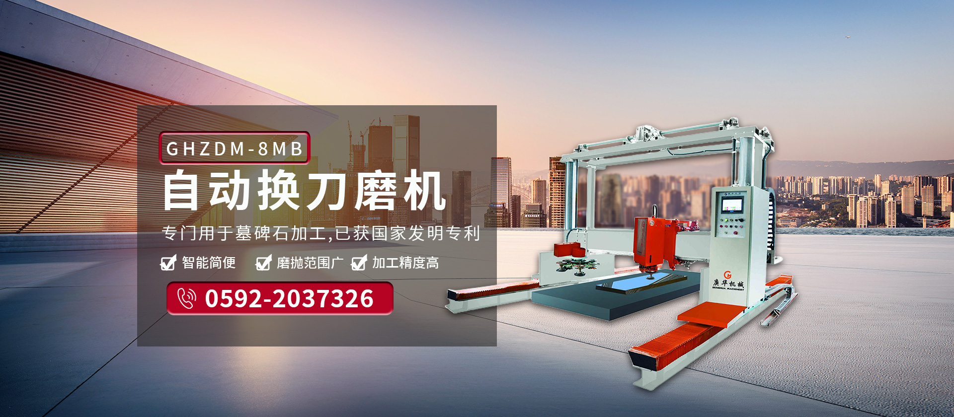 公司生產適用于大理石、花崗巖、砂巖、石灰巖、洞石、玉石等各種石材的機械設備。主要產品有GHHW系列紅外線橋式切邊機、GHQQ系列橋式多片組合鋸石機、各種手動/自動/單頭/多頭板材磨拋機、以及各種異形加工設備。公司長期注重品質管理,以質量為中心,從原材料采購到整機出貨,各道工序均嚴格管理,每臺機器必須經過認真的調試才出廠,確保出廠產品均是優質產品,給客戶創造“零煩惱”的產品。